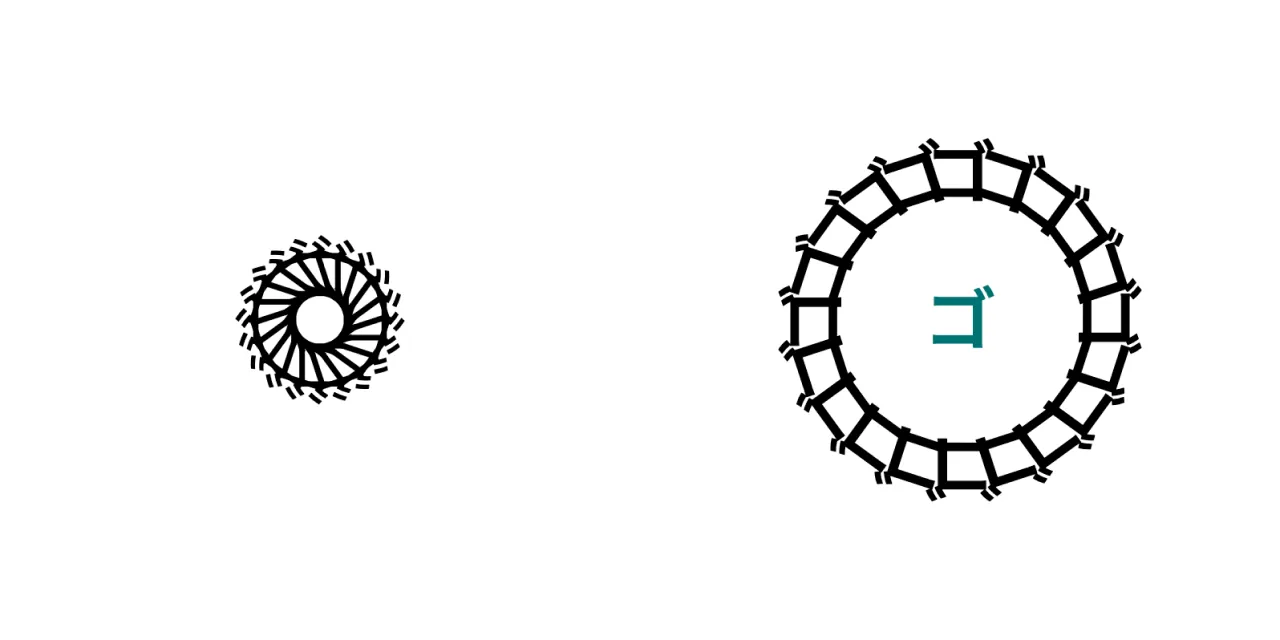 見出し「このプロジェクトについて」このプロジェクトは、カタカナ・ひらがなの各文字を CSS で円形に配置し、その形状やパターンを楽しむデザインプロジェクトです。